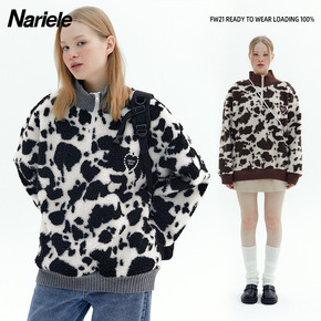 Nariele 奶牛羊羔毛上衣情侣装秋冬季爱心设计...