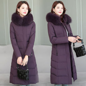 毛领棉衣女士妈妈中长款2021新款韩版修身棉袄保暖...