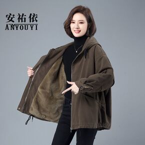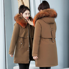 加绒棉衣女中长款2021冬新款韩版宽松超厚时尚派克...