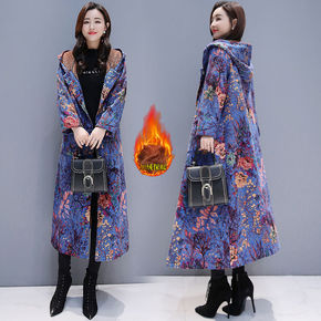 冬季新款女复古民族风长款棉麻加绒防寒保暖气质过膝连...