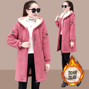 2021冬季新款休闲宽松女卫衣开衫羊羔绒韩版中长款...