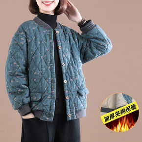 复古盘扣羽绒棉衣女2021冬装新款印花民族风长款棉...