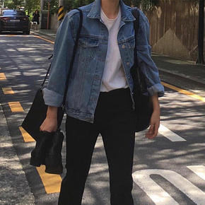 楠涛春季新款韩国ins牛仔夹克翻领短款休闲宽松长袖...