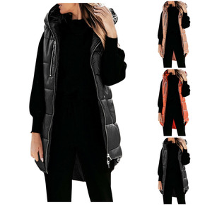 棉马甲中长款2021新款女秋冬羽绒棉连帽百搭无袖坎...