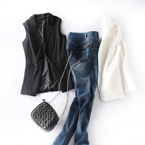 ZOJ品质棉麻通勤帅气小西装马甲黑色时尚日系女装2...