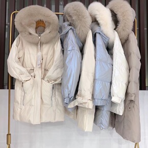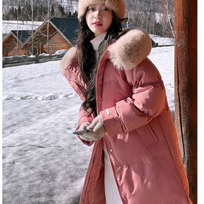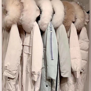 羽绒服女2022年新款冬中长款白鸭绒大毛领派克工装...