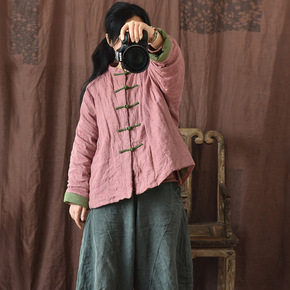 幸月/原创自制色织条纹亚麻中式盘扣夹棉短外套 国风...