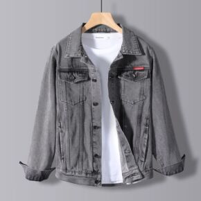 2021外贸秋冬青年男装棕色牛仔休闲外套男士纯色单...