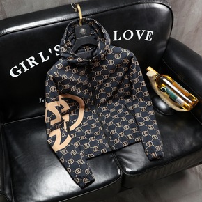 欧洲站潮牌印花春秋外套个性青年连帽男士夹克修身秋装...