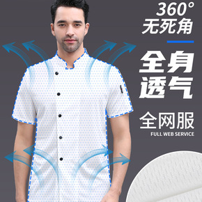 全身透气网厨师工作服短袖男夏季薄款冰丝凉爽餐饮火锅...