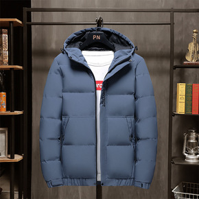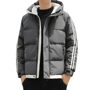 2020外贸跨境冬季新款男士连帽棉衣纯色加绒加厚男...