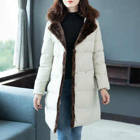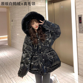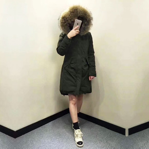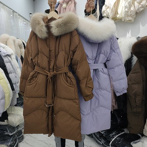欧洲站2018冬季新款进口貉子毛领可收腰加厚长款女...