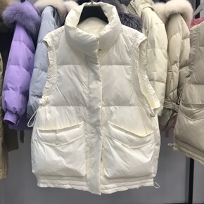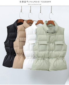 2021花边羽绒马甲女立领背心收腰韩版短款拉链大口...