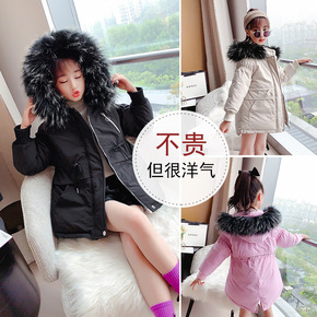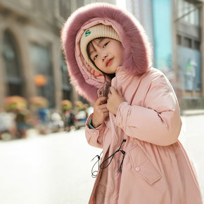 女童冬季亲子白鸭绒毛领羽绒服2021新款大童加厚洋...