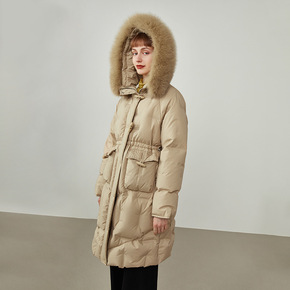 范思蓝恩214069狐狸毛领羽绒服女中长款牛角扣收...