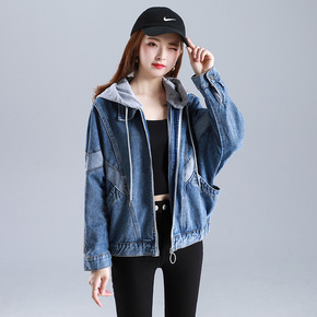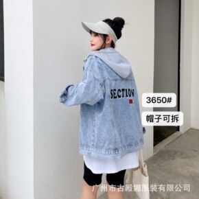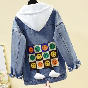 帽子可拆牛仔外套女2022春秋新款个性贴布学院风休...