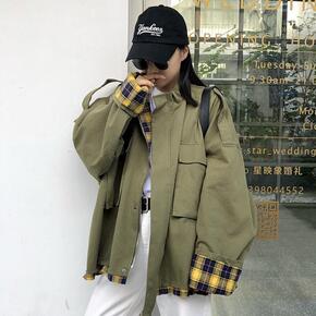 工装盐系外套女学生韩版宽松港风复古春秋冬原宿风日系...
