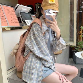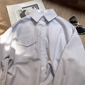 条纹衬衫女2022春季新款韩版宽松休闲BF风学生显...