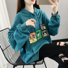 1565卫衣女全棉毛圈新款韩版慵懒风bf宽松学生纯...