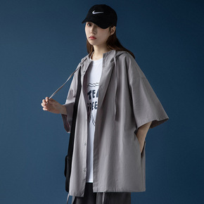 2022新款春夏防晒衬衫开衫女BF风连帽韩版学生宽...