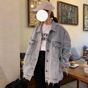 复古牛仔外套女秋冬百搭学生宽松重工割破拼接休闲长袖...