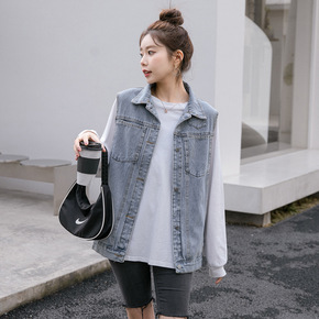 春秋季牛仔马甲女宽松韩版学生百搭bf工装无袖坎肩外...