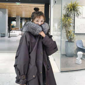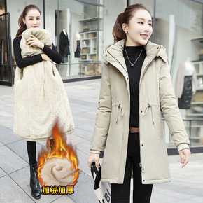 中长款风衣女冬季新款韩版时尚加绒加厚棉袄连帽外套收...