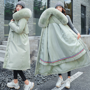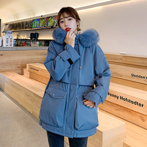 冬季韩版新款派克服大毛领中长款修身棉衣加绒内胆女式...