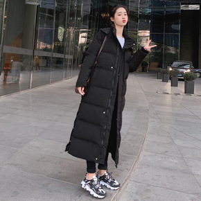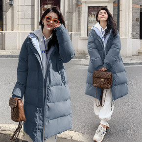 2021冬新款韩国棉服女长款过膝假两件宽松加厚连帽...