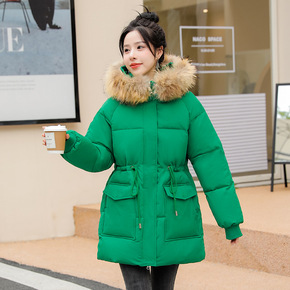 2021冬装中长款棉服女宽松加厚棉衣过膝大毛领棉袄...