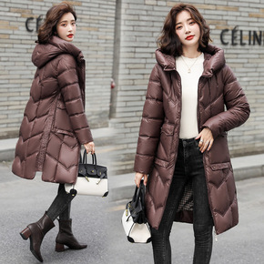 俄罗斯亮面加长款棉服女2021新款韩版休闲女式棉衣...
