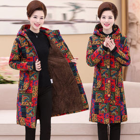 2021妈妈装中老年棉衣中长款加肥加大棉袄女外套中...