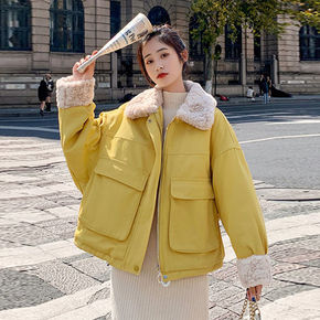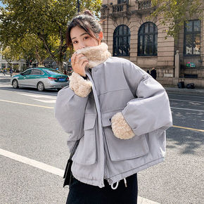 棉衣女短款2021新款韩版宽松羊羔毛棉服ins小棉...