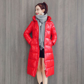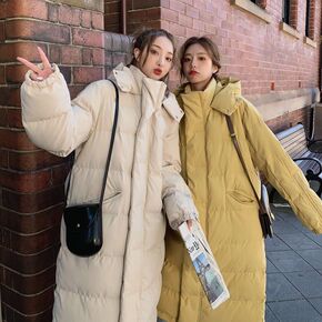 2021中长款羽绒棉服女韩版加厚修身显瘦防风亮面外...
