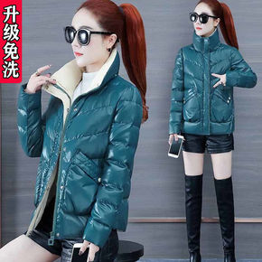 免洗亮面棉服女短款2021年新款韩版宽松棉衣蝴蝶结...