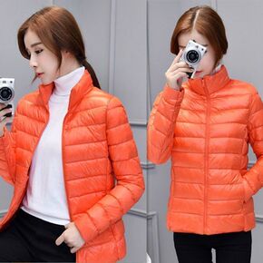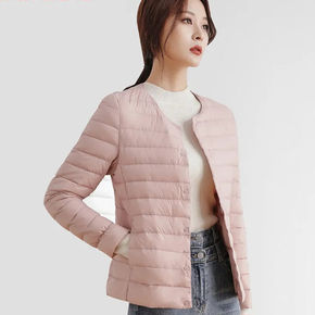 2021年新款圆领轻薄羽绒棉服女短款修身保暖内胆棉...