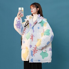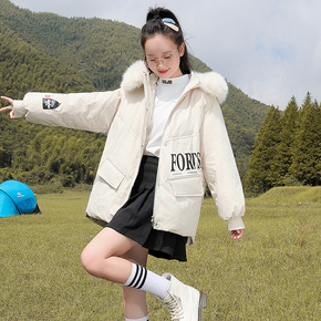 棉衣女2021新款冬季棉袄中长款加厚修身带帽洋气宽...
