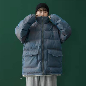 免洗棉服女亮面2021韩版棉衣女中长款冬季宽松加厚...