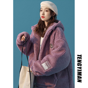 紫色羊羔毛外套女生冬天韩版chic设计感小众202...