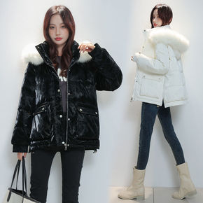 免洗亮面羽绒棉服女短款2021年新款冬季高端亮面加...