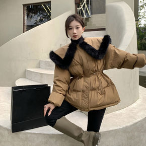 抽绳收腰毛领棉衣棉袄羽绒棉服棉外套秋冬海军领加厚长...