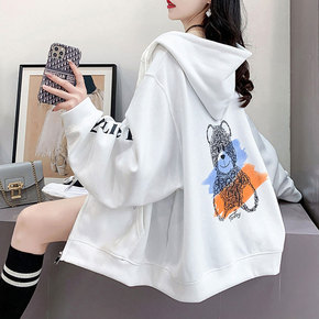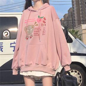 韩版学院风可爱甜美卡通印花连帽卫衣女春秋薄款时尚宽...