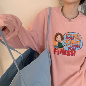 实拍韩国2021秋季韩系宽松圆领可爱印花套头常规款...