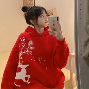 韩版可爱卡通动漫印花两只猫甜美连帽卫衣秋冬新款加绒...