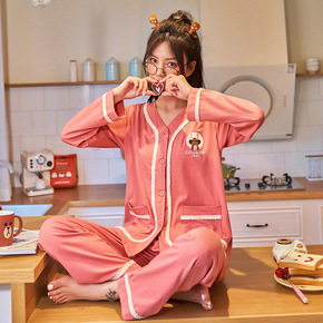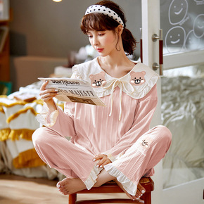 2021春秋季睡衣针织棉长袖甜美可爱小熊少女大码两...