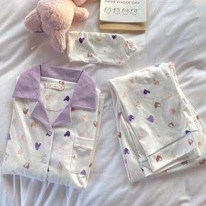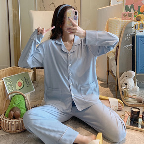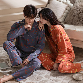 情侣睡衣女春秋翻领开衫休闲甜美可爱新疆棉家居服男套...
