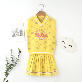 女童毛衣春秋开衫外套马甲背心毛衣裙宝宝针织衫百褶裙...