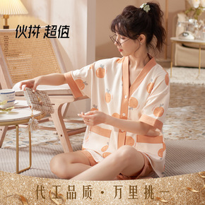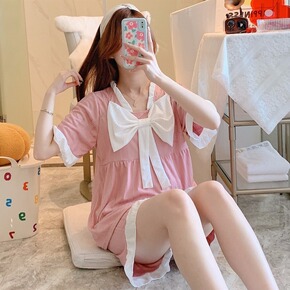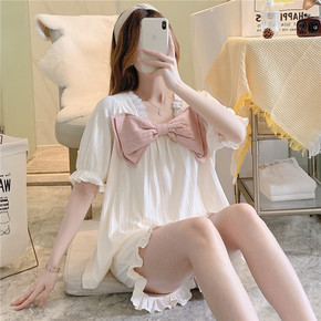 睡衣女夏季棉质短袖短裤开衫公主风薄款韩版卡通可爱i...