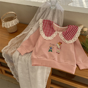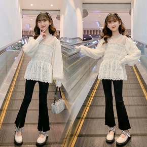 女童2022春季新款中大童蕾丝衬衫上衣韩版流行洋气...