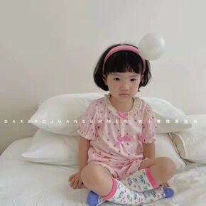 大小卷2022夏季新款碎花睡衣女童薄款日系甜美可爱...